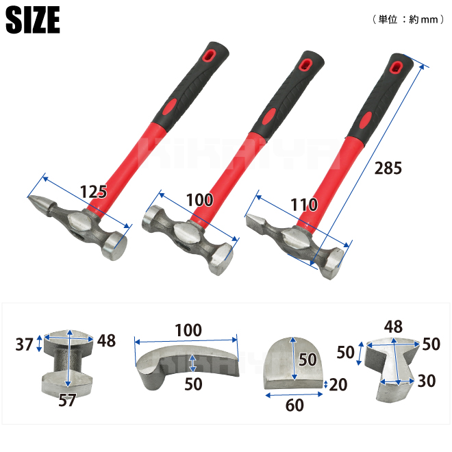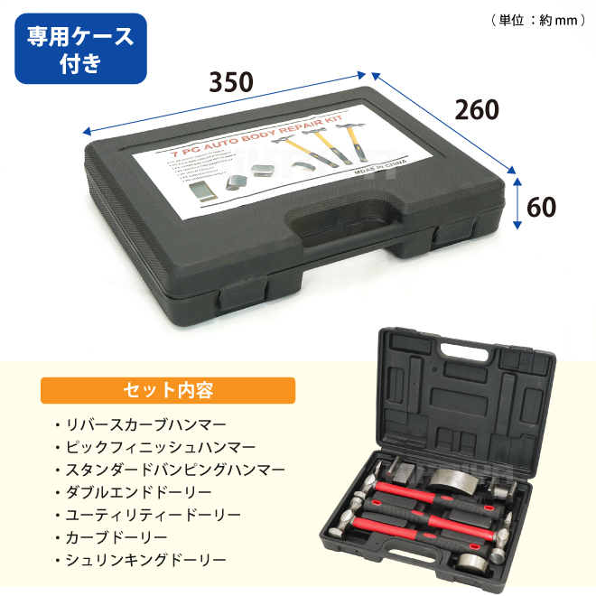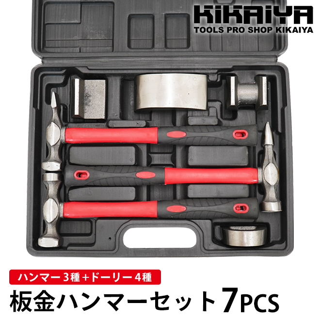 - 板金ハンマー 7pcs セット 板金 金属加工 ハンマー ドーリー 専用ケース KIKAIYA