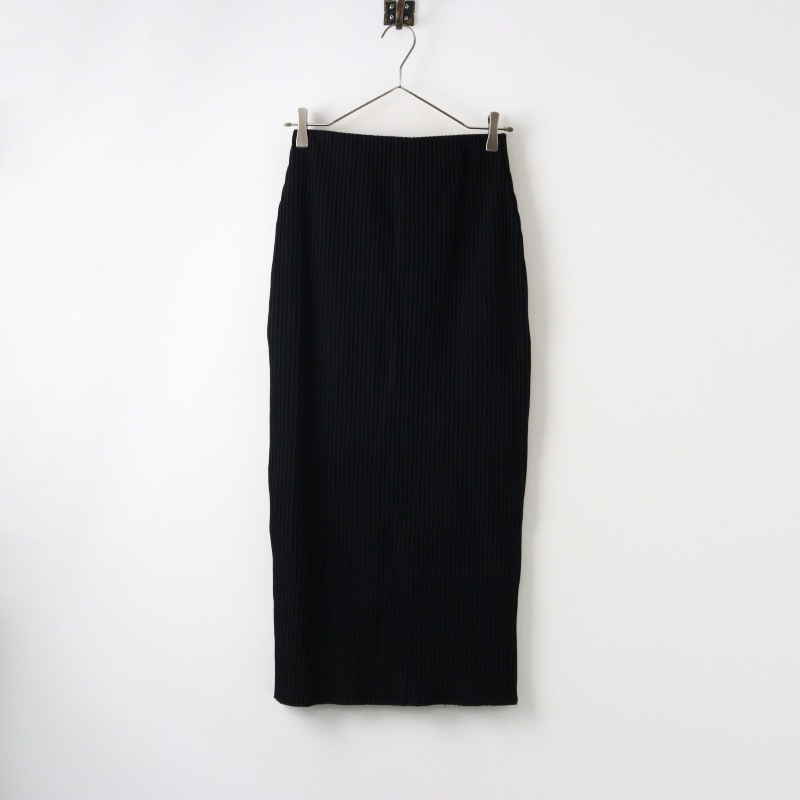 > 2023SS スピックアンドスパン Spick & Span リブカットタイトスカート 36/ブラック ロング プリーツ ストレッチ イージー【2400014418095】