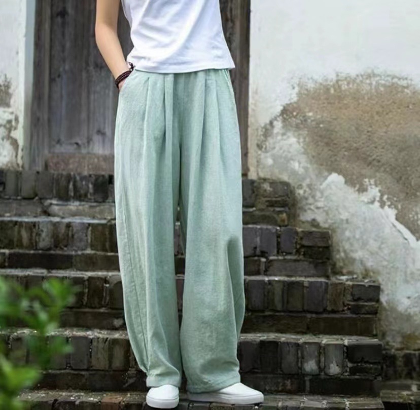 - 人気品エレガントお色選択可M-3XLサイズ夏新品ボトムス 大人 カジュアル 無地パンツ ガウチョパンツ ゆったり綿麻パンツ サルエルパンツ 緑