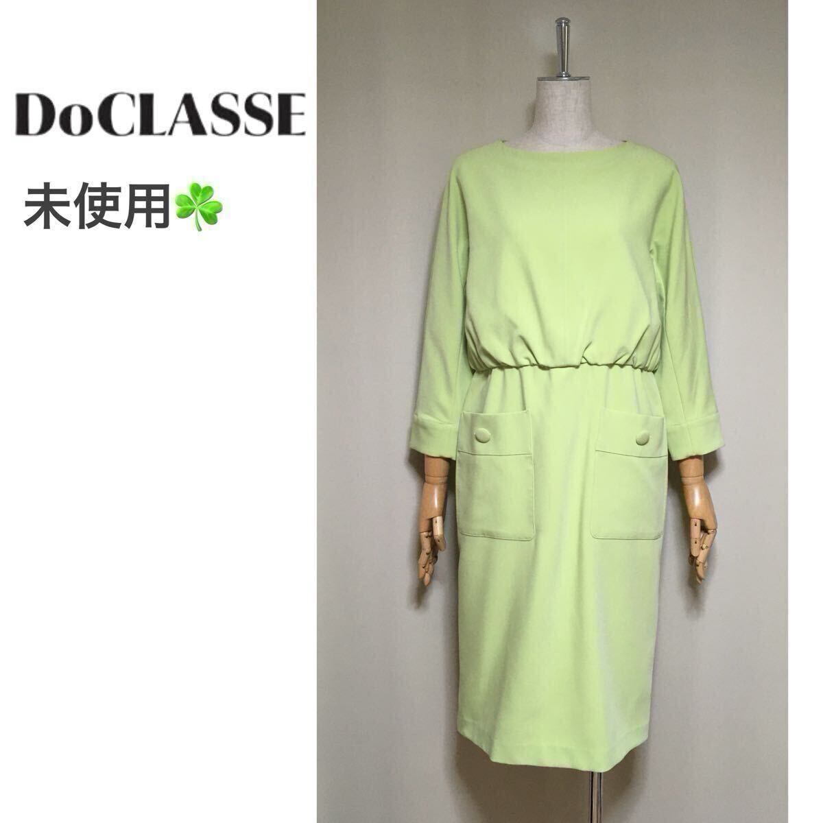 - 新品未使用◇DoCLASSE ドゥクラッセ 洗える ポリエステル×レーヨン キレイめ ワンピース 11号/Lサイズ ライトグリーン系 レディース 膝下