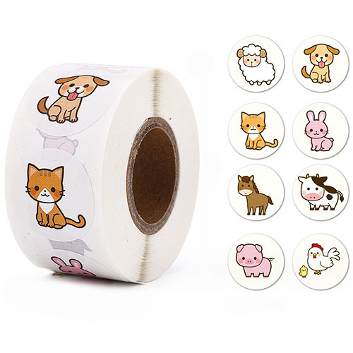 - 動物 どうぶつ アニマル 全身 ステッカー ロール シール 約25mm 1巻約500枚 ニワトリ ブタ ウシ 2310 seal-148 当日発送