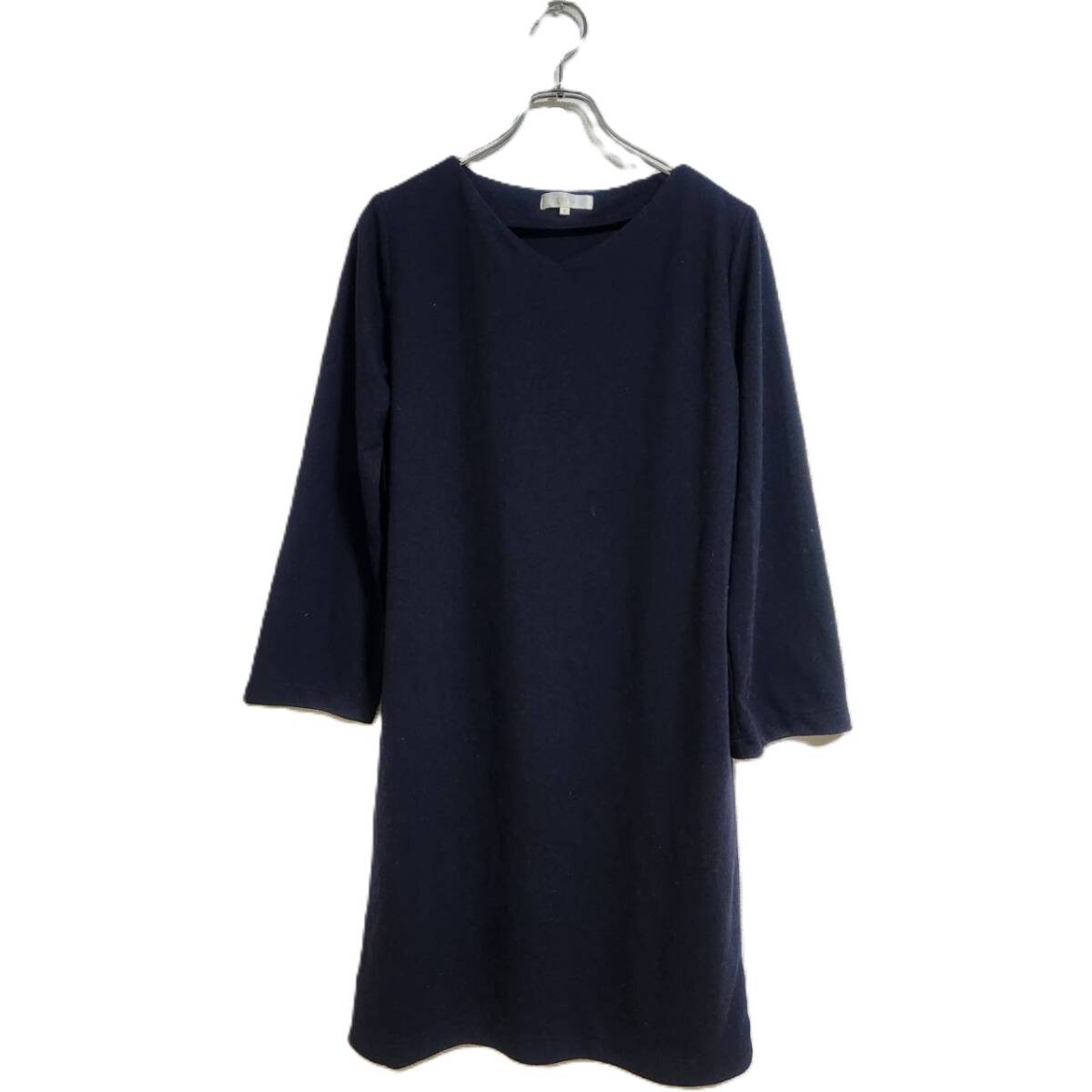 - grove ワンピース 長袖 シンプル ネイビー 裏起毛 M おでかけ 美品