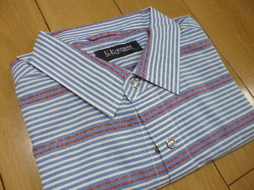 - 送料無料★お洒落なUPレノマ・半袖シャツ・ブルー&パープル系・L寸★未使用