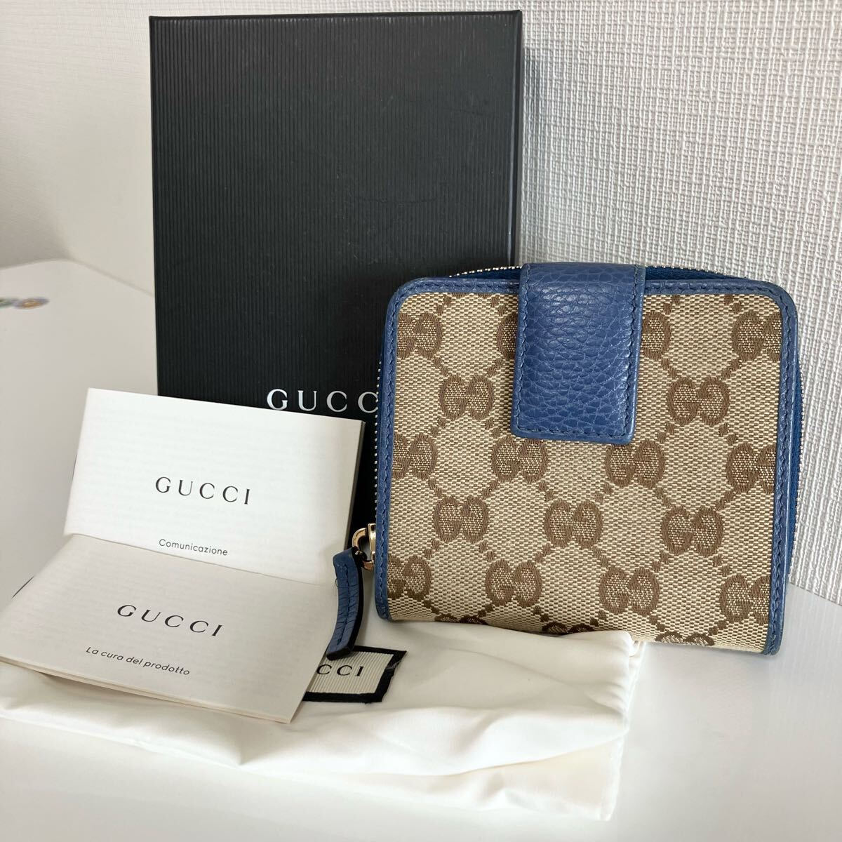 - GUCCI グッチ 折財布 ブルー 青色 GGキャンバス