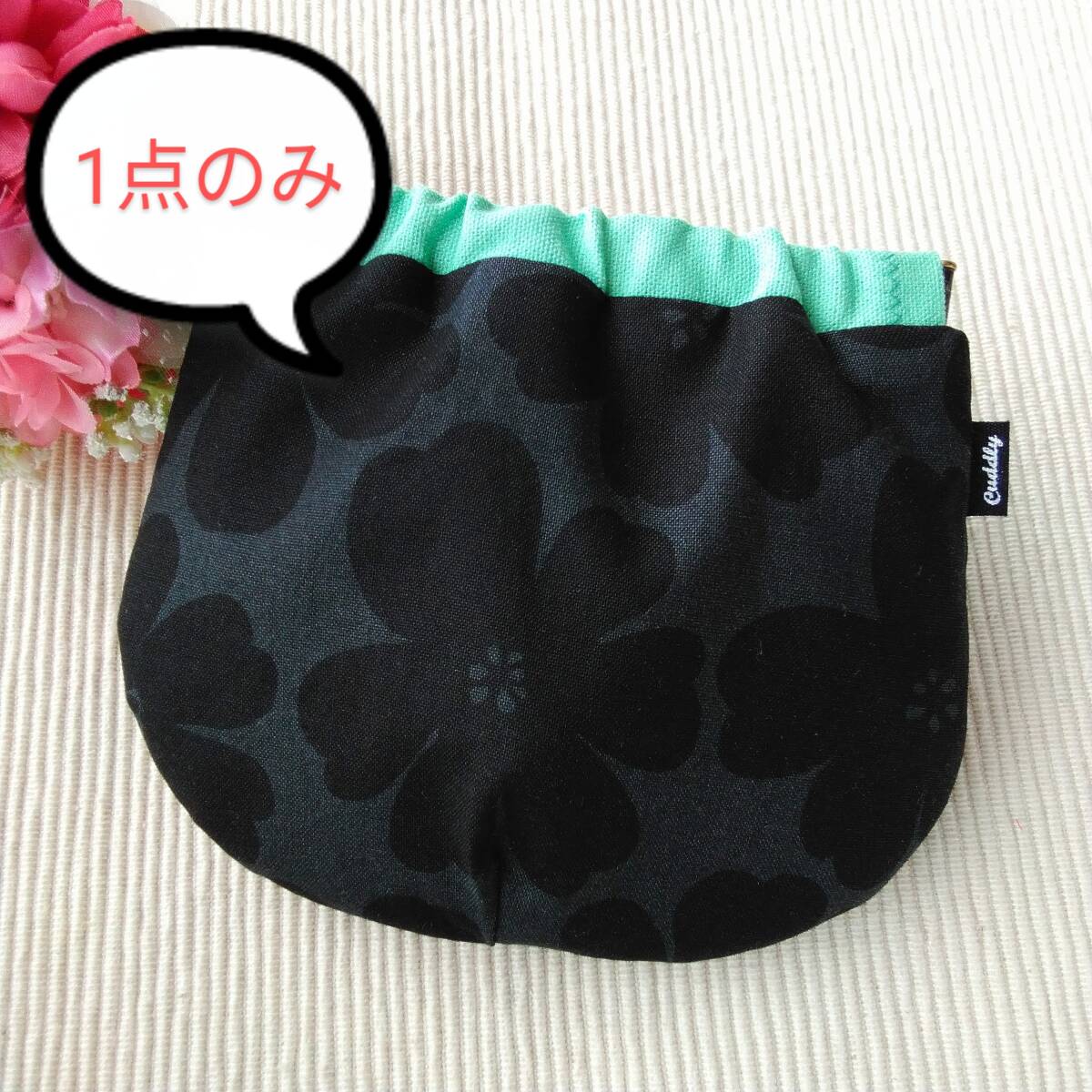 - 1点のみ ハンドメイド バネポーチ ラビスタ ブラック×ミントグリーン