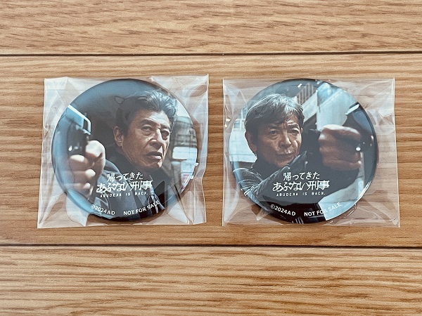 - 帰ってきたあぶない刑事 缶バッジ 非売品 限定特典 新品 舘ひろし 柴田恭兵 タカ ユージ 2種セット 鷹山敏樹 大下勇次 あぶデカ