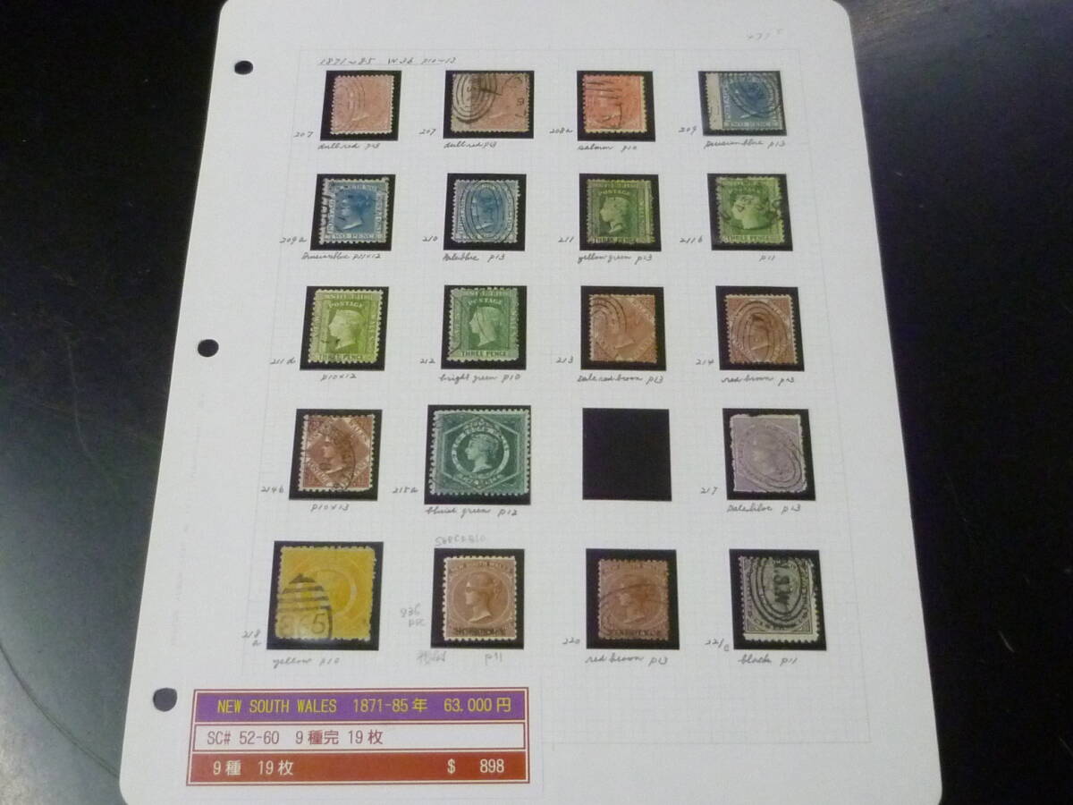 - 23L M №10 オーストラリア切手 NEW SOUTH WALES 1871-85年 クラシック SC#52-60 9種完 計19枚 使用済・未使用1種 【SC評価 $898】
