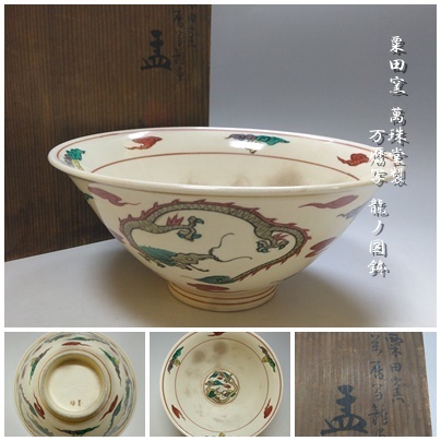 - 【T-412】粟田窯 萬珠堂製 万暦写 龍ノ図 菓子鉢 共箱付 茶道具