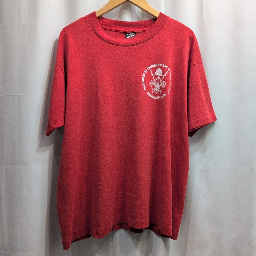 > USA製 FRUITS OF THE LOOM フルーツオブザルーム プリント Tシャツ L メンズ 半袖 赤 レッド Vintage ヴィンテージ ビンテージ