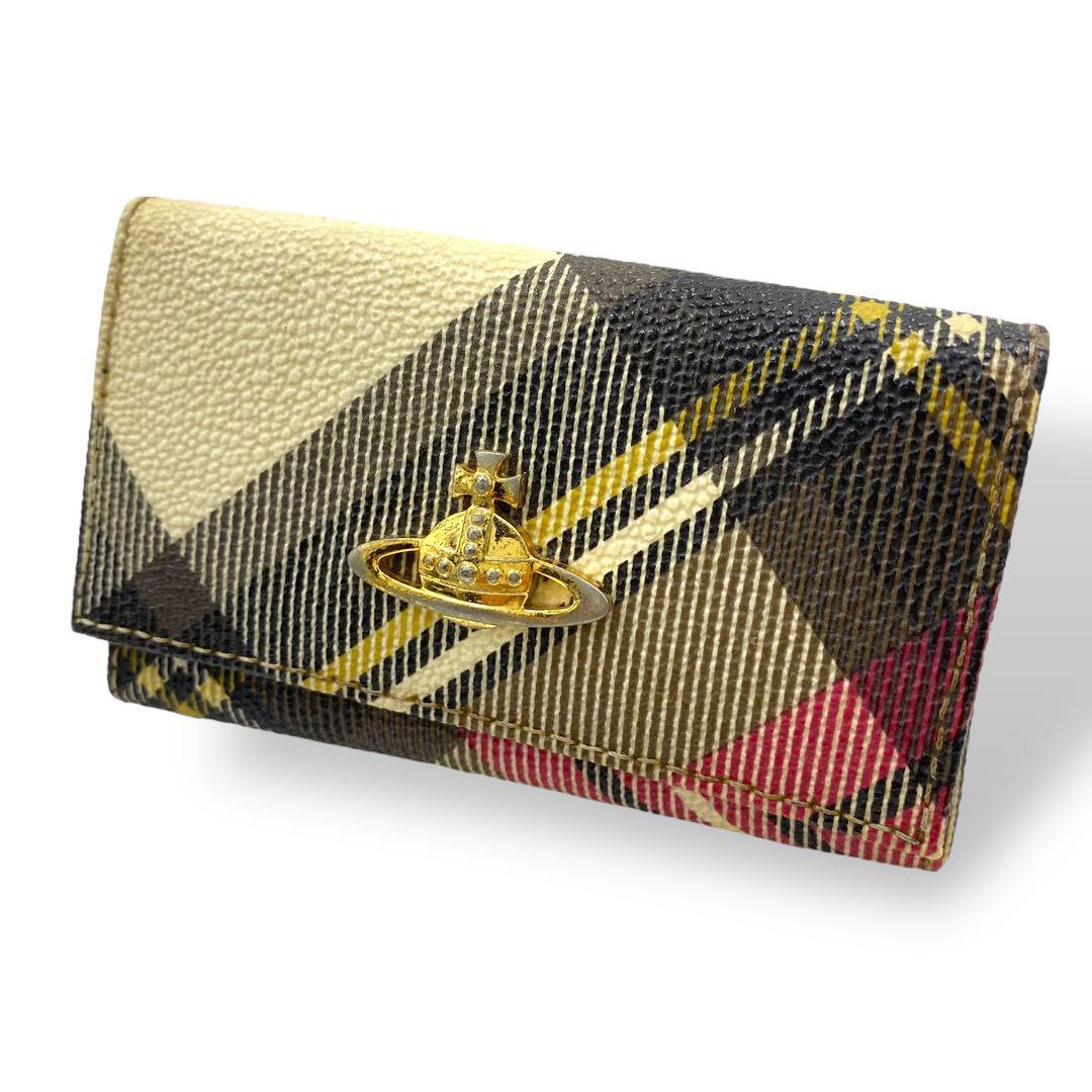 - ヴィヴィアンウエストウッド キーケース レザー チェック柄 三つ折り オーブ