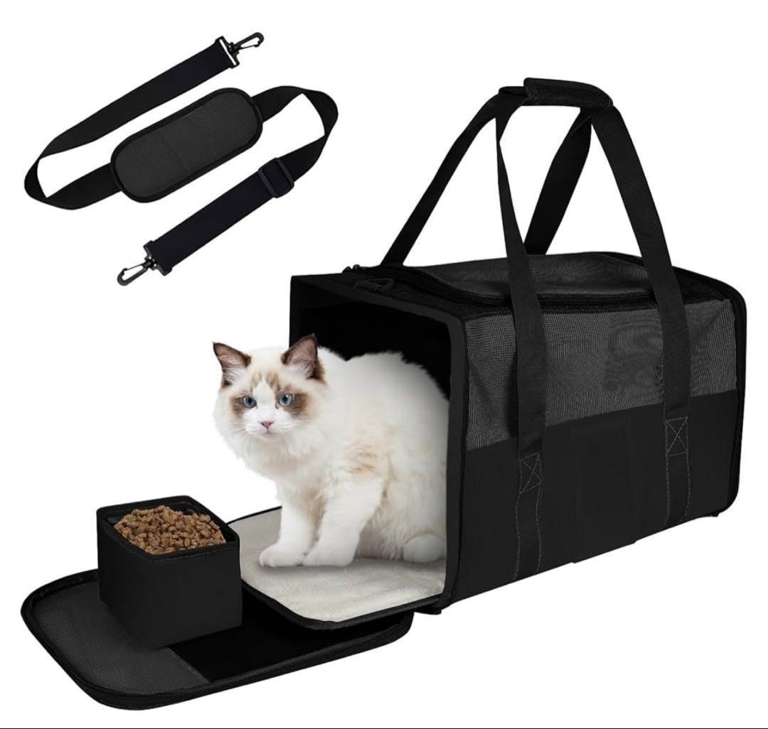 - 猫 キャリーバッグ ブラック 4way ショルダー ペット 犬 折りたたみ可能