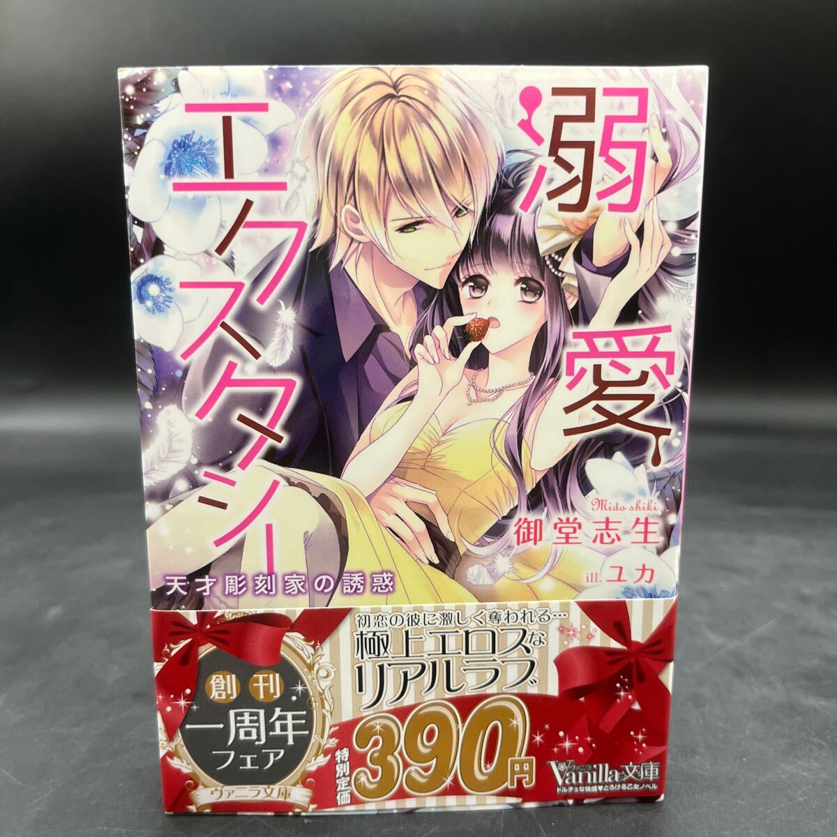 - 【美品/署名本/初版】御堂志生『溺愛エクスタシー』Vanilla文庫創刊一周年フェア イラスト/ユカ 帯付き サイン本
