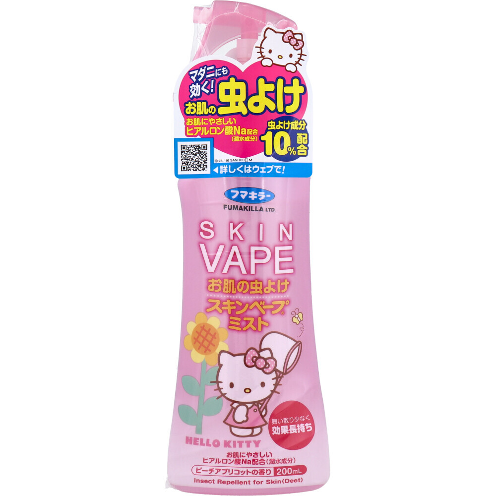▼▼▼▼▼▼注意事項▼▼▼▼▼▼・送料込み(送料650円が商品価格に含まれています) 一部地域では追加送料あり。・お取り寄せ商品です。弊社にて手配後、メーカー・卸業者からの直送になります。・まれにメーカー欠品、出荷遅延等が発生致します。問題発生時は別途メールにてご連絡致します。・配送方法の指定、日時指定、置き配、ギフト対応、他商品との同梱配送などは対応できません。・まとめ買いや複数購入の場合は通常より発送に時間が掛かる場合がございます・複数個口の場合、2階以上への搬入ができない場合があります。(その場合は1階での受け渡しとなります)・大型連休、お盆、年末年始などは発送をお休みさせていただく場合がございます・メーカー都合により、パッケージは予告なく変更される場合がございます・梱包用のダンボールはリサイクル品を使用させていただきます。・注文に関するご連絡(注文確定通知・発送通知など)はメールでご案内させていただきます※商品ページの内容について、少しでもご不明な点などがございましたら購入前に一度ご連絡ください▲▲▲▲▲▲注意事項▲▲▲▲▲▲〇商品説明家族みんなで使えるやさしい水性タイプ。●マダニにも効く!●効きめ長持ち! 虫よけ成分を10%配合しているので、効果が長時間持続します。●お肌にやさしい使い心地 お肌にやさしい潤水成分ヒアルロン酸Na配合。ウォーターベースなので素肌にしっとりなじみます。 舞いちりも少なく、どなたでも安心してお使いいただけます。●虫よけ剤特有のいやなニオイがないピーチアプリコットの香りです。●たっぷり使えるファミリーサイズお子様から大人まで家族全員で、毎日の外出前など、日常的にお使いいただけます。●皮膚アレルギーテスト済み※すべての方にアレルギーが起きないということではありません。【防除用医薬部外品】販売名:スキンベープB3【有効成分】ディート(100mL中10g)【その他の成分】エタノール、ヒアルロン酸Na(2)、水、香料【効能・効果】蚊、ノミ、イエダニ、マダニ、ブユ、サシバエ、トコジラミ、アブ、ヤマビルの忌避【使用方法】・レバーの下にある白いストッパーOPENの位置に合わせて使用する。・使用後はストッパーを元の位置に戻して保管する。※液が出にくい場合は、ボトルを立てて使用する。★蚊、ノミ、イエダニ、マダニ、ブユ、サシバエ、トコジラミ、アブの忌避・肌から約10cm離して、適量を肌の露出部にまんべんなくスプレーする。・顔・首筋等は、手のひらに一度スプレーしてから肌に塗布する。★ヤマビルの忌避・肌の露出部および履物やズボンのすそ等に、約10cmの距離から適量をまんべんなくスプレーする。・顔・首筋には、手のひらに一度スプレーしてから肌に塗布する。【用法・容量に関する注意】・ヤマビルの忌避を目的とした場合は、以下のことに注意する。ヤマビルの忌避に使用する場合以外は衣類にかけない。ヤマビルの忌避を目的とした場合は、薬剤だけに頼らず、シャツやズボン、長靴等を使用し、肌を露出しないよう注意する。スプレーした直後の履物や衣類に火気を近づけない・漫然な使用を避け、蚊、ブユ等が多い戸外での使用等、必要な場合にのみ使用する。※小児(12歳未満)に使用させる場合:保護者等の監視の下、以下の回数を目安に使用すること。顔には使用しないこと。◆生後6ヶ月未満:使用しない◆6ヵ月〜2歳未満:1日1回以内◆2歳〜12歳未満:1日3回以内 【使用上の注意】<相談すること>・眼に入ったり、飲んだり、なめたり、吸い込んだりすることがないようにし、塗布した手で眼をこすらない。万一眼に入った場合は、直ちに大量の水でよく洗い流す。また、具合が悪くなる等の症状が現れた場合は、ただちに、本剤にエタノールとディートが含まれていることを医師に告げ、診療を受ける。<その他の注意>・定められた使用方法を厳守する。眼や唇のまわり、傷口への使用はさける。付いた時には直ちに水で洗い流す。・乳幼児や肌が敏感な人は、上腕の内側等に少量スプレーし、その箇所に異常のないことを確かめて使用する。・万一肌に異常が現れた時は、直ちに使用を中止する。・他の容器に入れ替えて使用しない。誤使用の原因になったり、品質が変わるおそれがあります。・シャツ、ズボン等の衣服に噴射する場合、繊維の種類によっては本剤により変質する場合がある。合成繊維は変質しやすいので注意する。・ストッキング等の上に直接噴霧しない(生地が傷む場合があります)。食品、食器、玩具、皮革製品、毛皮、家具、塗装面、フローリング、プラスチック製品等にかからないようにする。・マニキュア、ジェルネイル等、装飾したネイルに直接かからないよう注意する。【保管及び取扱い上の注意】・火気や直射日光をさけ、小児の手の届かない所に保管する。★火気厳禁第二石油類 200mL 危険等級3 エタノール〇商品仕様個装サイズ:73X215X35mm個装重量:約230g内容量:200mL製造国:日本