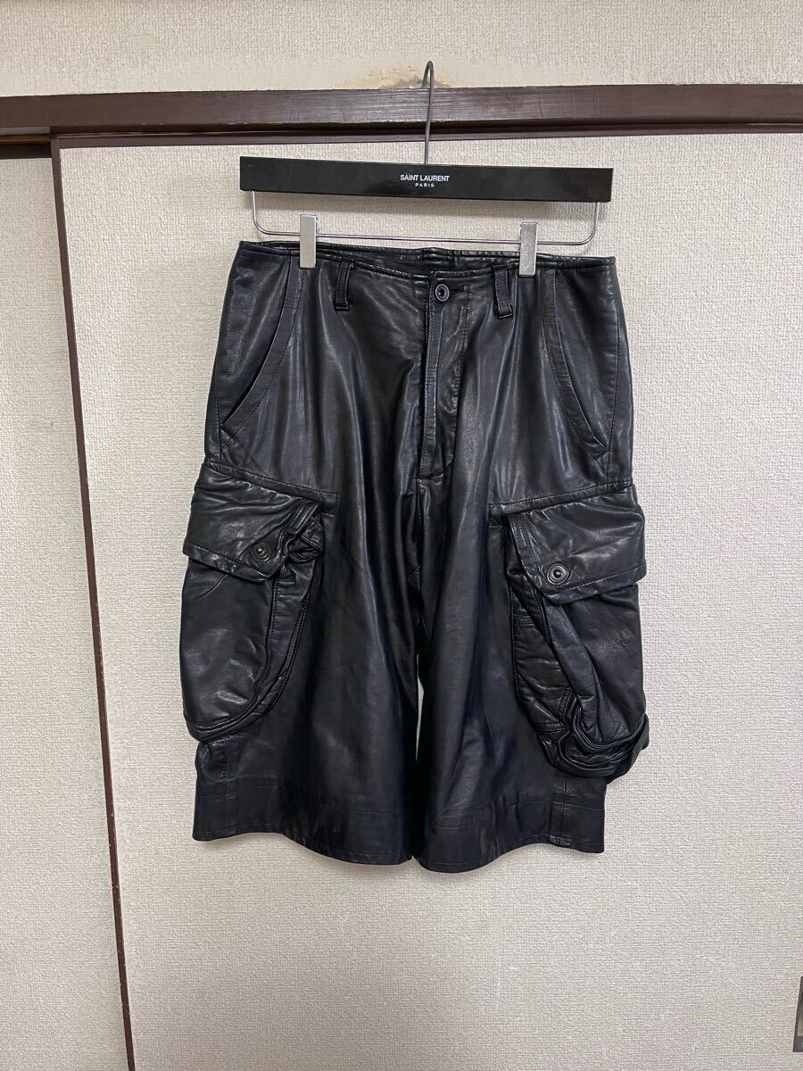 - 【希少!】【良品】 JULIUS ユリウス LEATHER CARGO SHORTS レザーパンツ カーゴショーツ BLACK ブラック 黒色