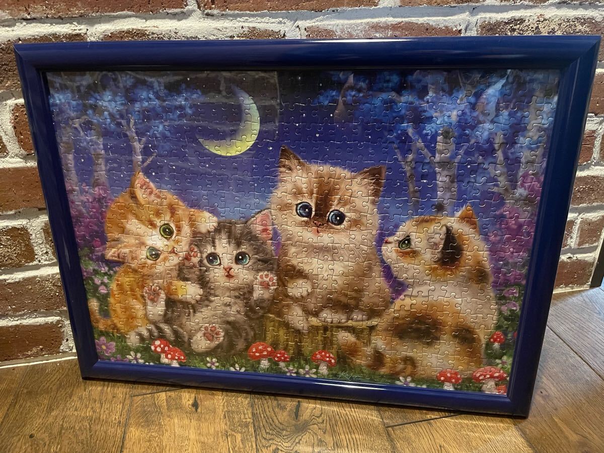 - 猫 パズル 完成品 きのこ 夜 三日月 4匹 壁飾り 壁掛け アート 送料無料 ねこ 月