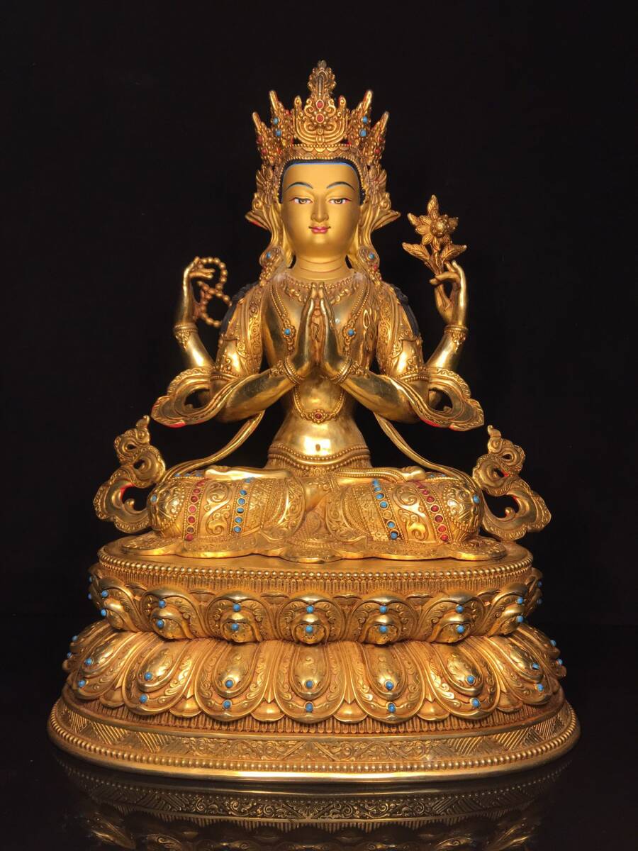 - 【超珍館蔵】銅製 塗金 四臂度母像 仏教古美術 供養品 古賞物 古美術品 稀少珍蔵品