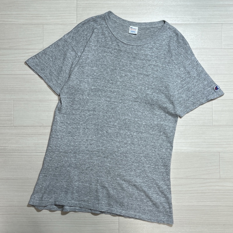 > Champion/チャンピオン/80s/USA製/トリコタグ/クルーネック/半袖Tシャツ/メランジグレー/袖ワンポイント