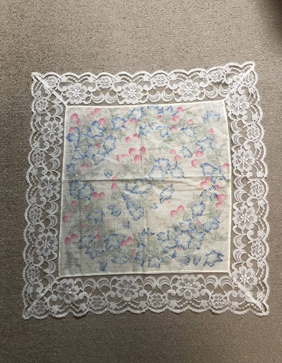 - レースの縁どり有り 金線織り 花柄 テーブル マルチカバー 約60x60cm