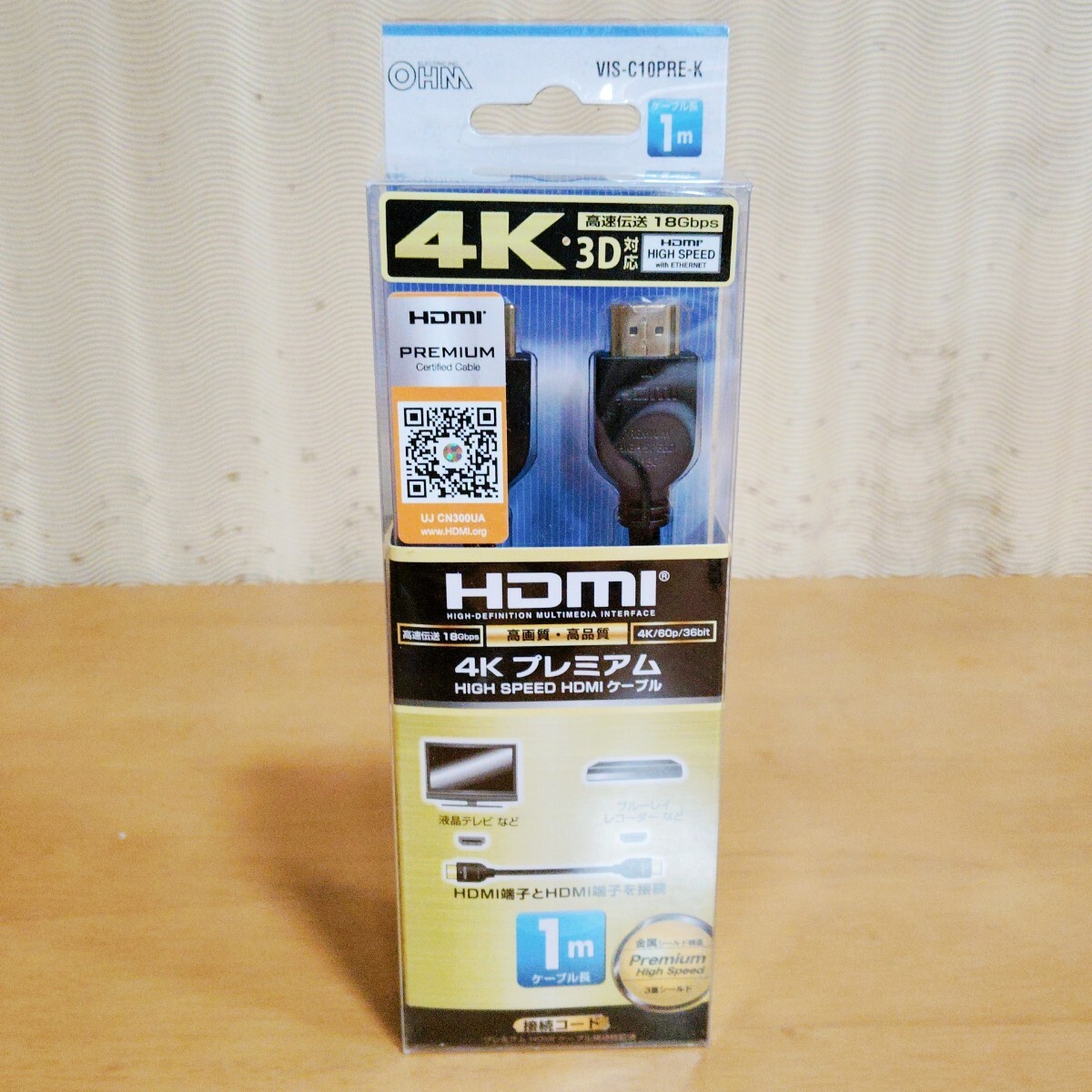 - 未使用 OHM 4Kプレミアム HIGH SPEED HDMIケーブル 1m VIS-C10PRE-K