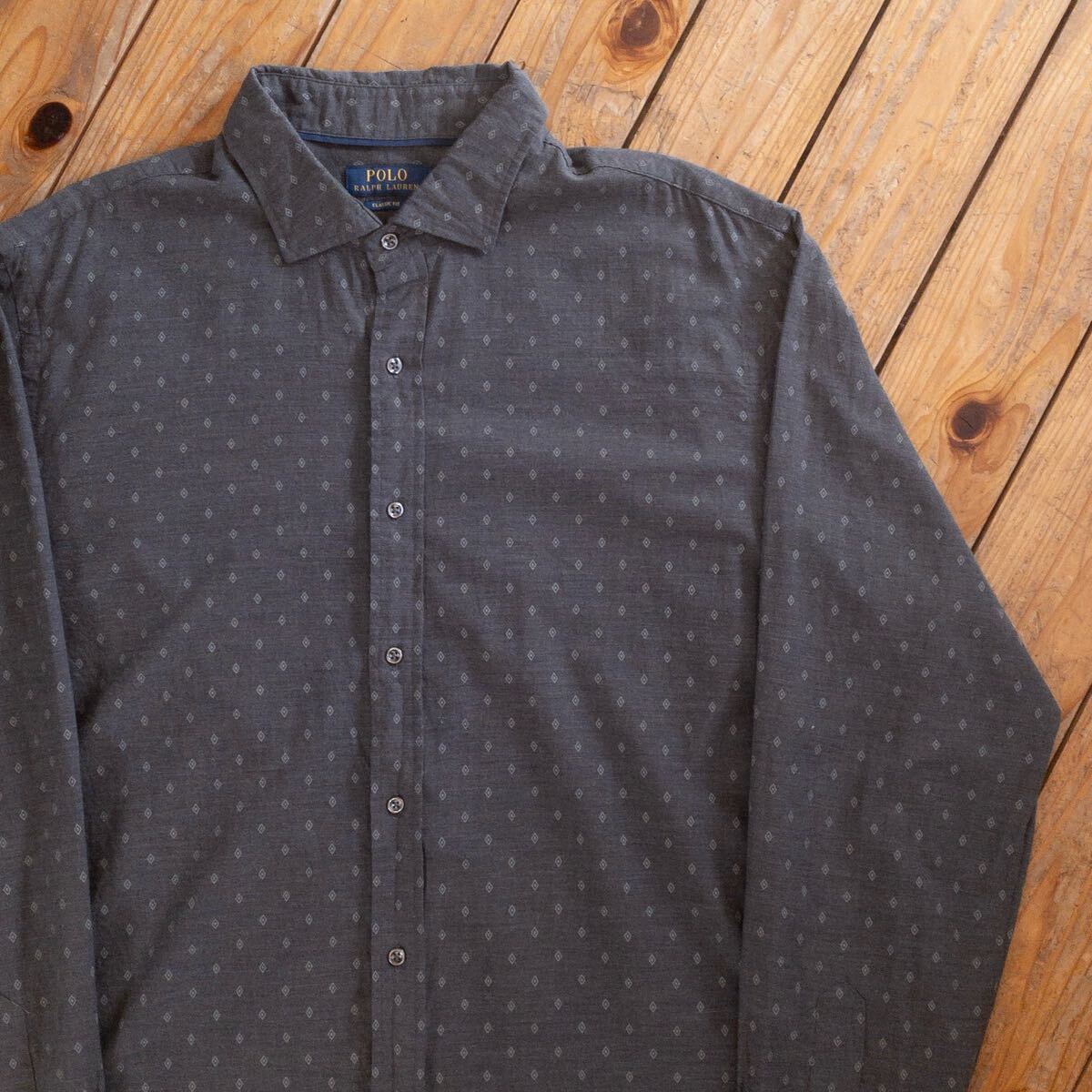 > USA古着 POLO ポロ Ralph Lauren 長袖シャツ メンズ XXLサイズ カジュアル 総柄 グレー 大きめ ビッグサイズ ラルフローレン T3022