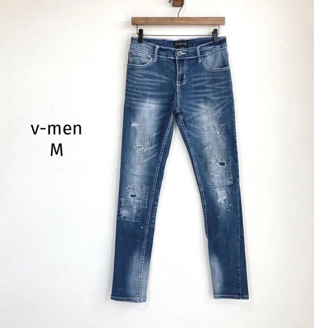 - ブイメン v-men スキニー デニム【M】アップリケ ダメージ