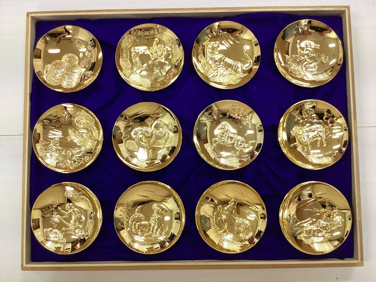- 十二支金盃 金メッキコーティング 縁起物 桐箱 24KGP N698