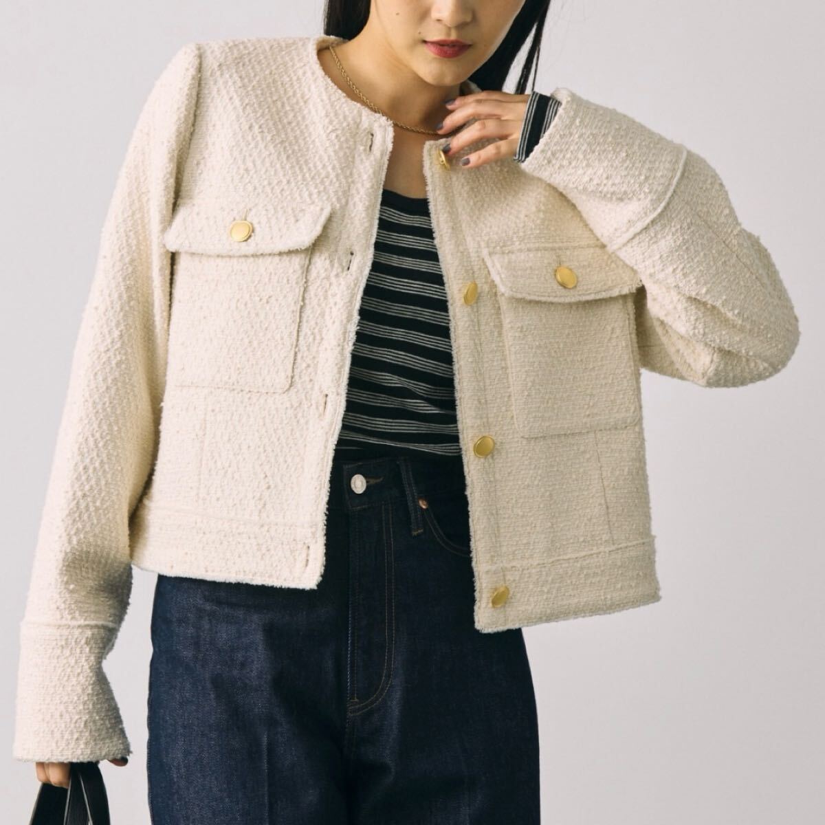 - BABYLONEノーカラーツイードジャケットショートクロップバビロンオケージョンセレモニー入学式卒業式参観日