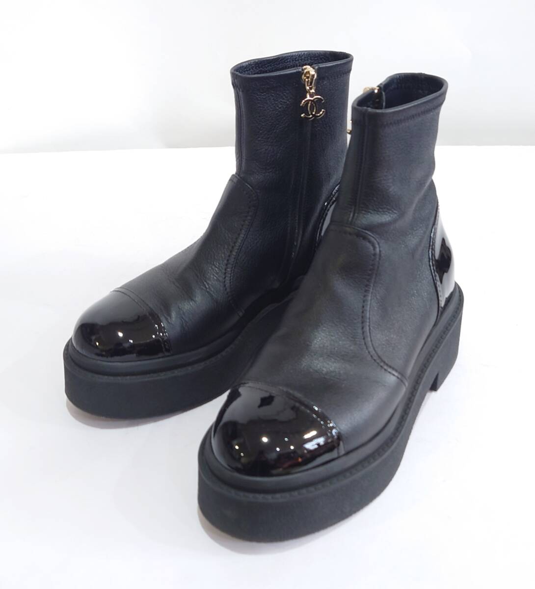 - CHANEL シャネル 厚底 レザー ショート ブーツ ブラック 38 Y-31430B