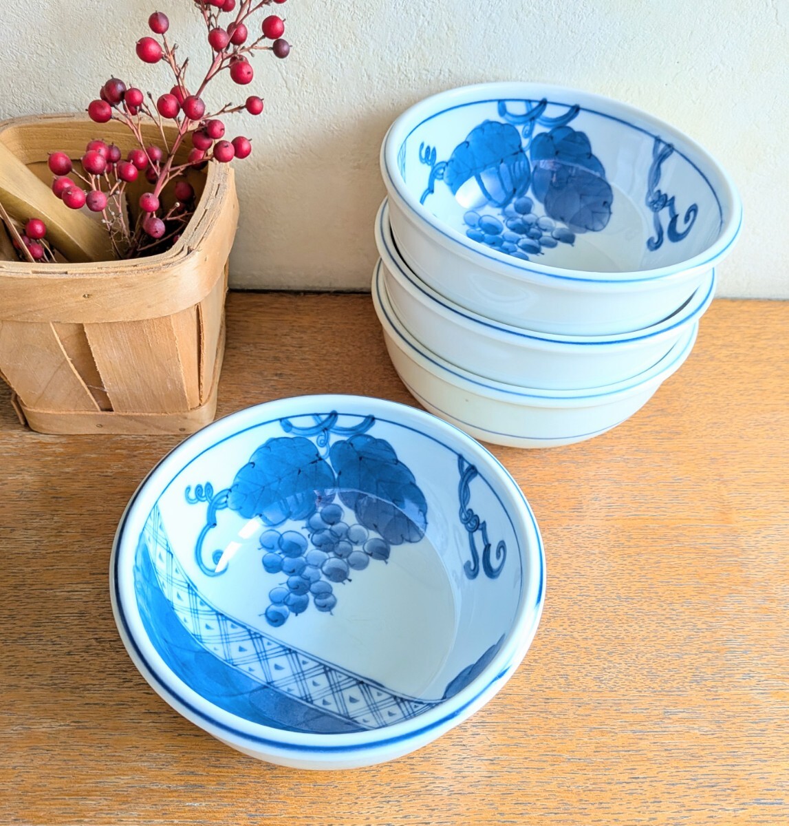 - 和光園 ぶどう柄 皿 4枚セット 和食器 小鉢 深鉢 ボウル