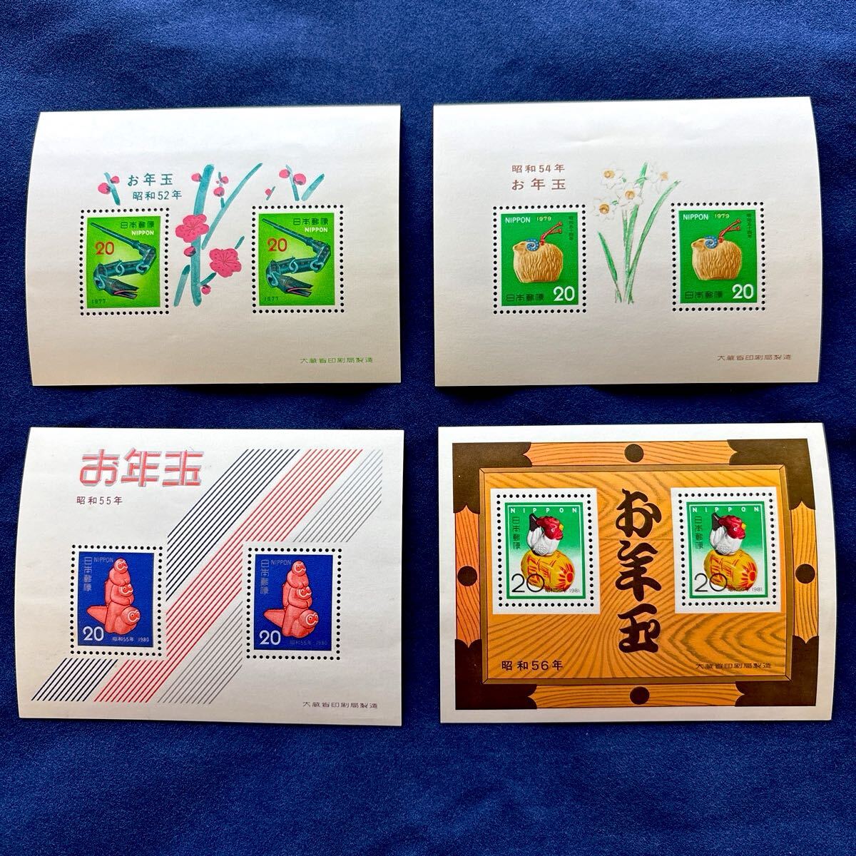 > お年玉切手【昭和52年~56年】竹へび・ひつじ鈴・喜々猿・にわとり〔未使用 小型シート4枚〕1977年~1981年 年賀 日本郵便 Japan 送料無料