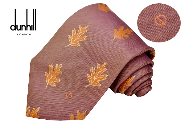 > N-2903★送料無料★美品★dunhill ダンヒル★正規品UK 英国製 イングランド製 dロゴ ヴィンテージ パープル 刺繍 リーフ柄 シルクネクタイ