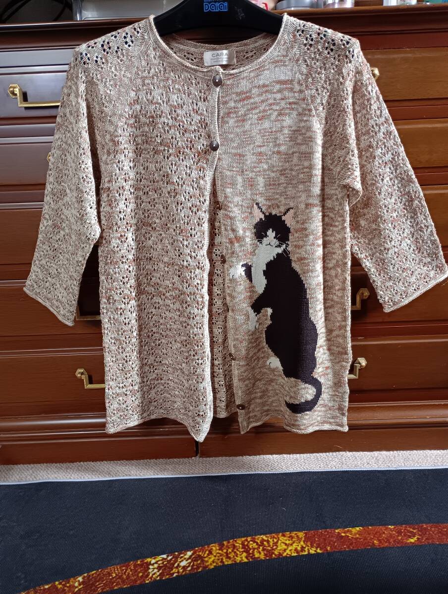 - 未使用★飛行船カーラ CARA ★サマーニットカーディガン★混ざり糸 ゆったり目 リアル猫の編込み