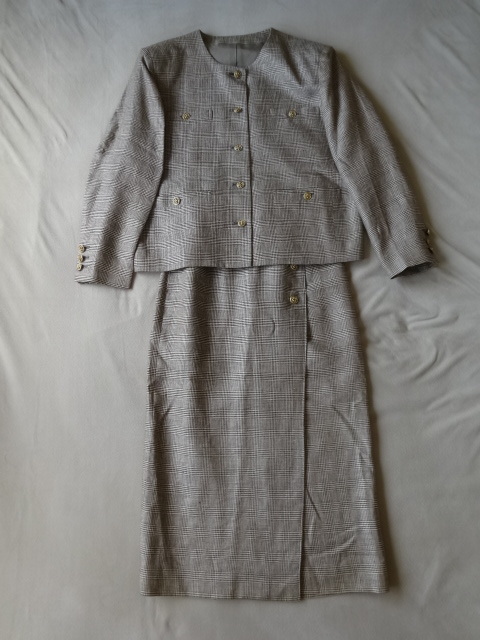 - BIGI JUST BIGI リネンスーツ 茶系グレンチェック柄 麻 VINTAGE