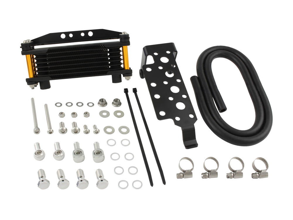 > XR50モタード用オイルクーラー コア 8段:フレームマウント(ブラックコア×ゴールドパイプ)_シフトアップ
