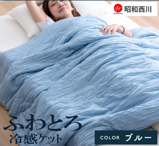 - 昭和西川くしゅくしゅ冷感ケット シングル 140×190cm ブルー