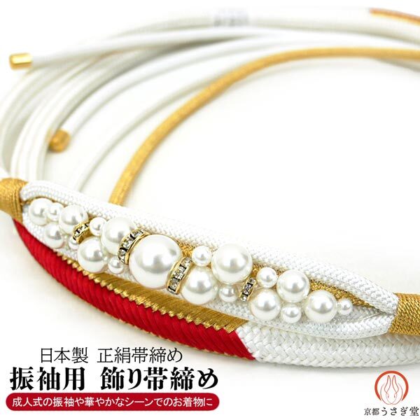 - 正絹 飾り帯締め 振袖 成人式 白 ホワイトoj-077 帯締め パールビーズ ラインストーン 白コーデ 結婚式