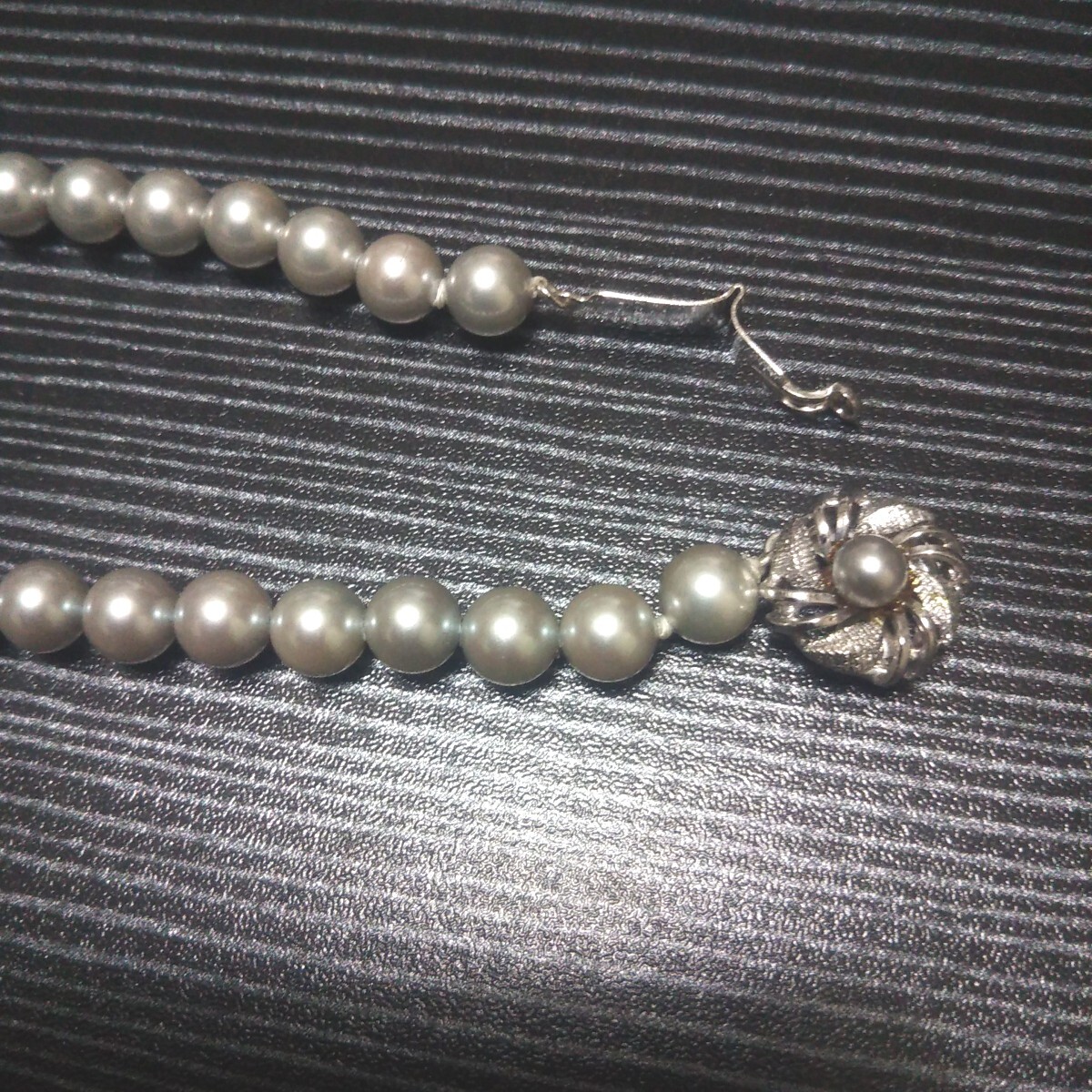 - 昭和レア物真珠シルバーネックレスアコヤ真珠グレーシルバー刻印有り虹色の赤み帯びたアコヤ真珠です。