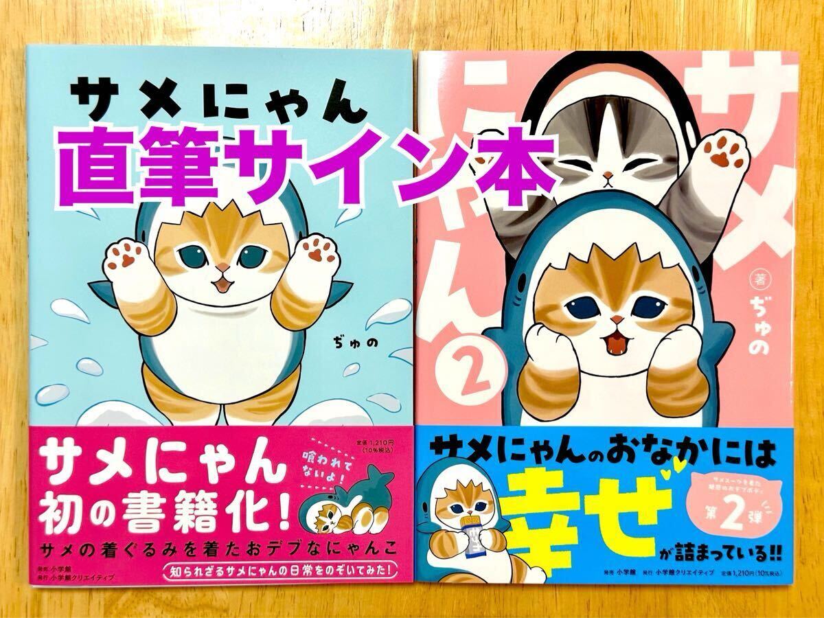 - 直筆サイン本 ぢゅの「サメにゃん」「サメにゃん2」2冊セット 初版 新品未使用 mofusand モフサンド 絵本 4コマ漫画 マンガ LINEスタンプ