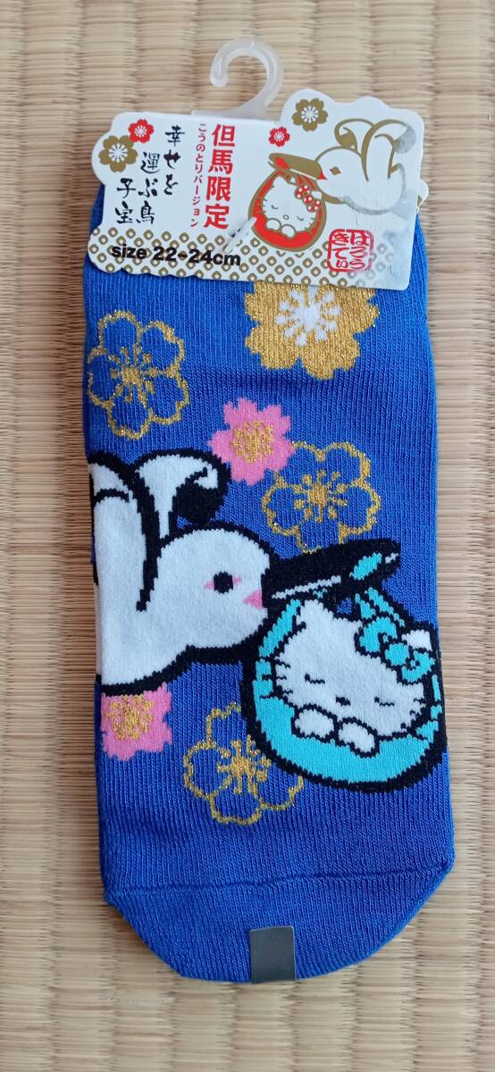 - サンリオ ハローキティ 但馬限定 こうのとり靴下 ソックス キティちゃんこうのとりバージョン 幸せを運ぶ鳥 子宝 未使用22~24cm