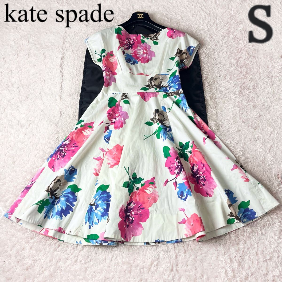 > kate spade ケイトスペード ニューヨーク ドレス ワンピース 花柄 総柄 フラワー フラワー Aライン 白 ホワイト パーティー 膝丈 S ピンク