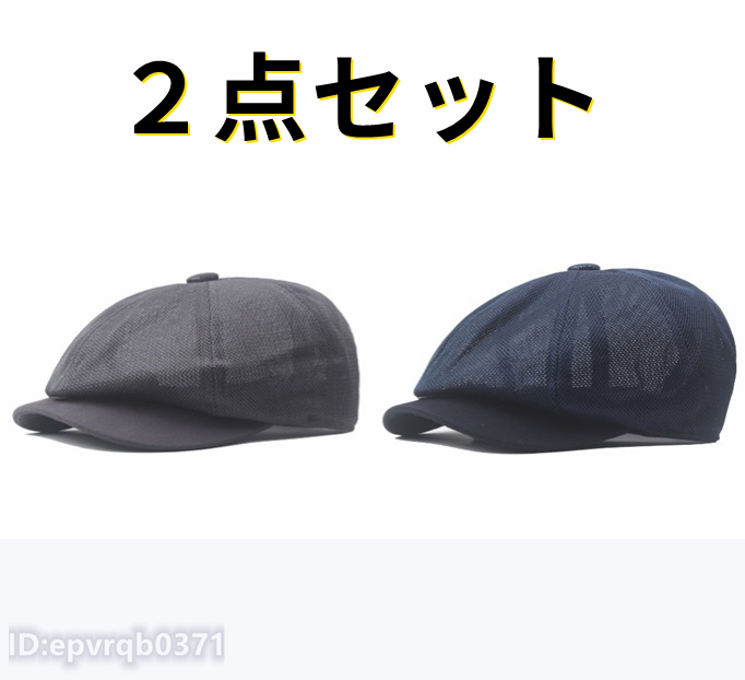 > 2点セット キャスケット 夏新品 メンズキャップ ベレー帽子 メッシュ 通気性抜群 紳士 ゴルフキャップ フリーサイズ グレー/ネイビー