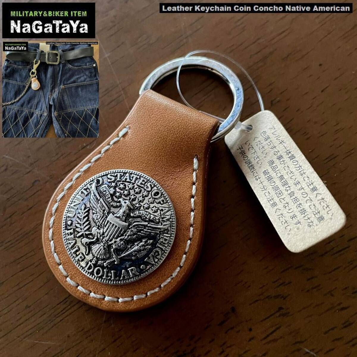 - 本革 ネイティブアメリカン レザー アメリカン コイン コンチョ キーホルダー キャメル インディアン系 メンズ レディース