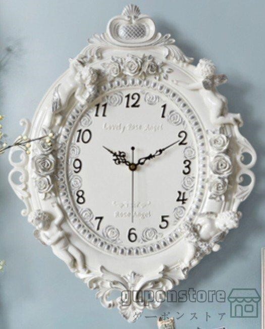 > 極美品★壁掛け時計1個 ウォールクロック ホワイト ロココ調 豪華 ヨーロッパ調 インテリアに 高級感 上品 洋風 綺麗 美しい リビング 寝室
