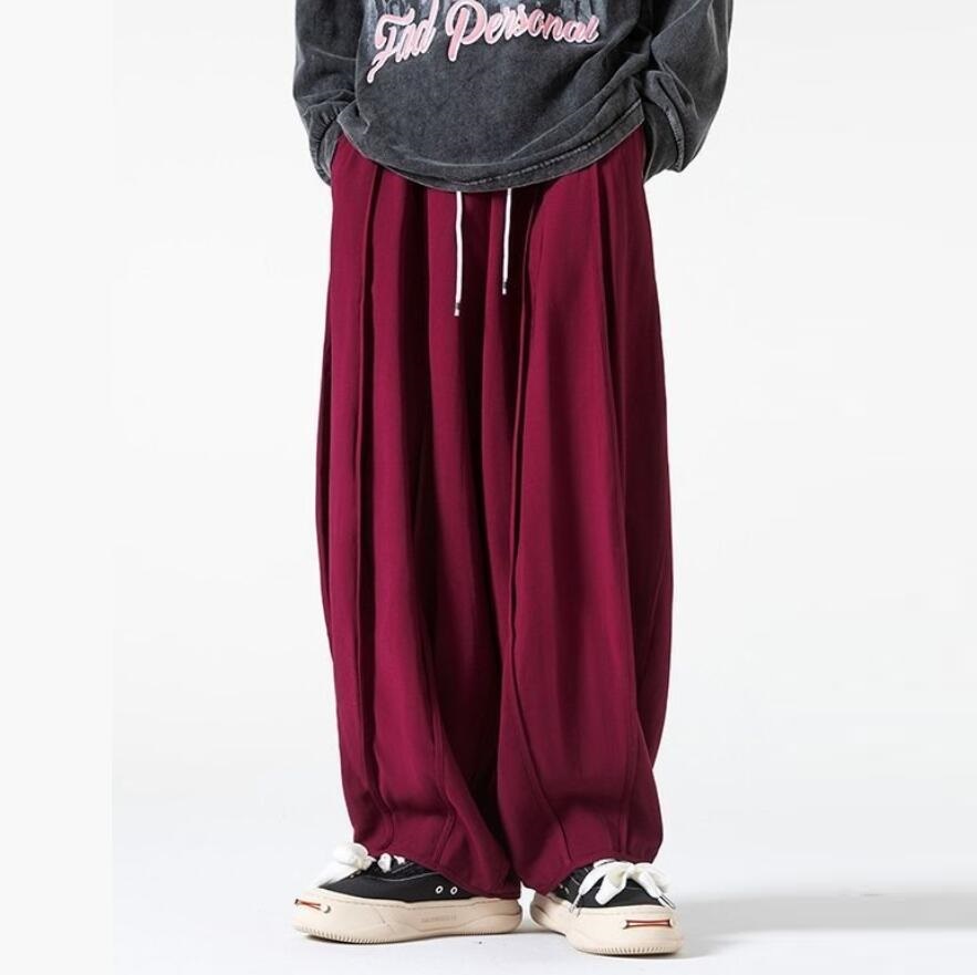 - 人気推薦/メンズパンツ 薄手 大人気 サルエルパンツ メンズ ハロンパンツ チノパン ワイドパンツ ロングパンツ 接触冷感 ゆったりツ/ワイン