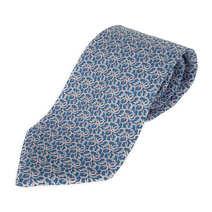 > Salvatore Ferragamo サルヴァトーレ フェラガモ ネクタイ ブルー系 ピンク系 絹 馬蹄柄 総柄【本物保証】