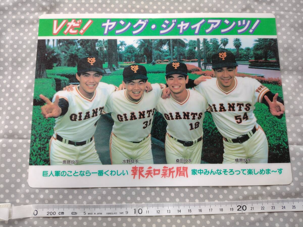 - 昭和60年頃 Vだ!ヤング・ジャイアンツ! 下敷き 報知新聞 桑田・槇原・水野・斎藤・マラドーナ・北勝海 巨人軍 即決