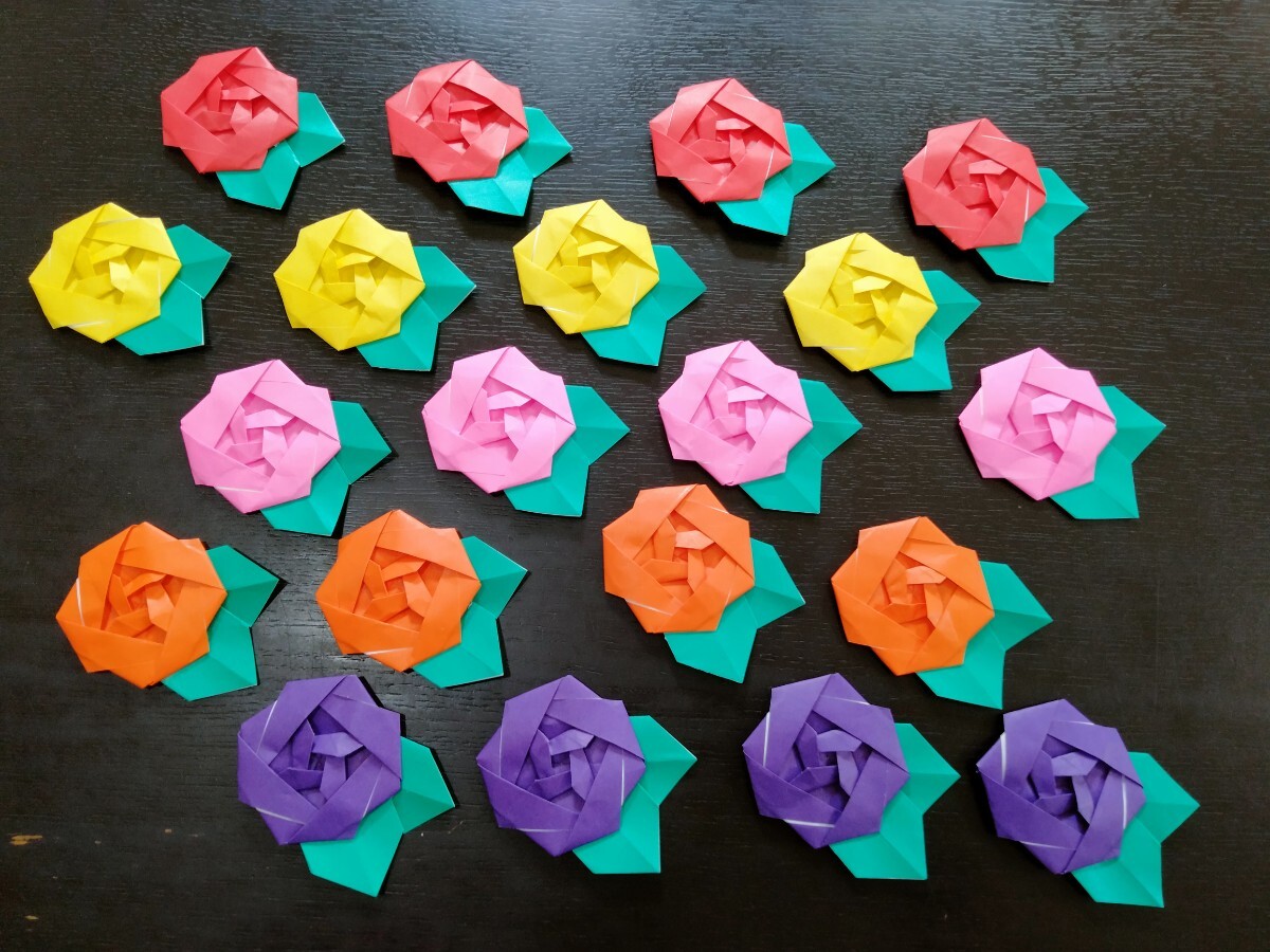 - 【新】カラフルな薔薇の花 ★折り紙細工 ハンドメイド リース素材、壁面飾り…5色各4個 計20個