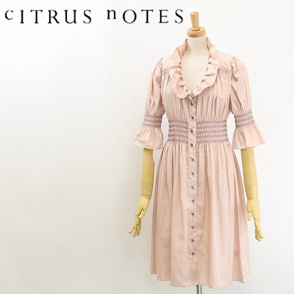 - ◆CITRUS NOTES シトラスノーツ フリル シャーリング ギャザー フレア ワンピース ベビーピンク 38