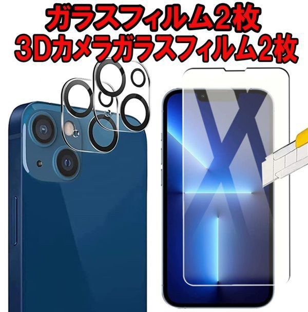 - 2セット=4枚 iPhone 15 ブルーライトカット カメラ ガラス フィルム レンズ アイフォン 保護 シール シート カバー 画面 Glass Film 9H