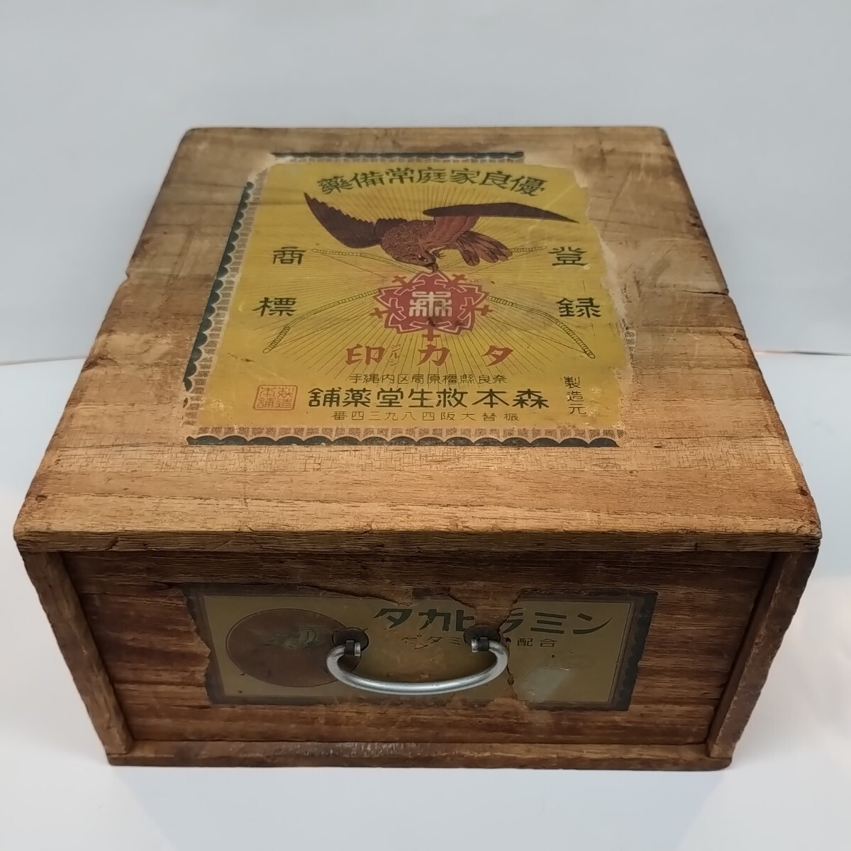 - 薬箱 昭和レトロ 当時物 アンティーク 木箱 置き薬 家庭薬 常備薬 骨董 当時物